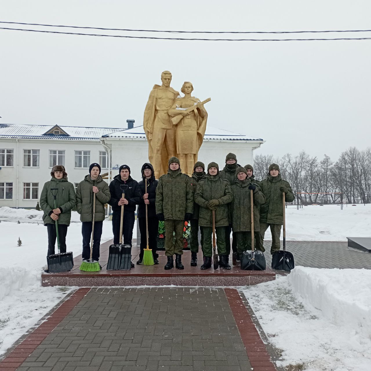 12 февраля волонтеры совместно с военнослужащими инженерно- сапёрного батальона в/ч 33933 11 механизированной бригады занимались благоустройством воинского захоронения в аг. Мижевичи и аг. Острово в зимний период.  Лейтенант Сильванович А. Д. поблагодарил наших  учащихся.
