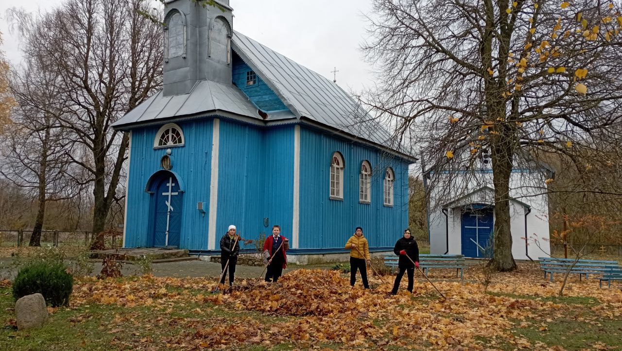 Волонтеры приняли участие в акции " Листопад" на территории храма Рождества Пресвятой Богородицы в аг.Мижевичи