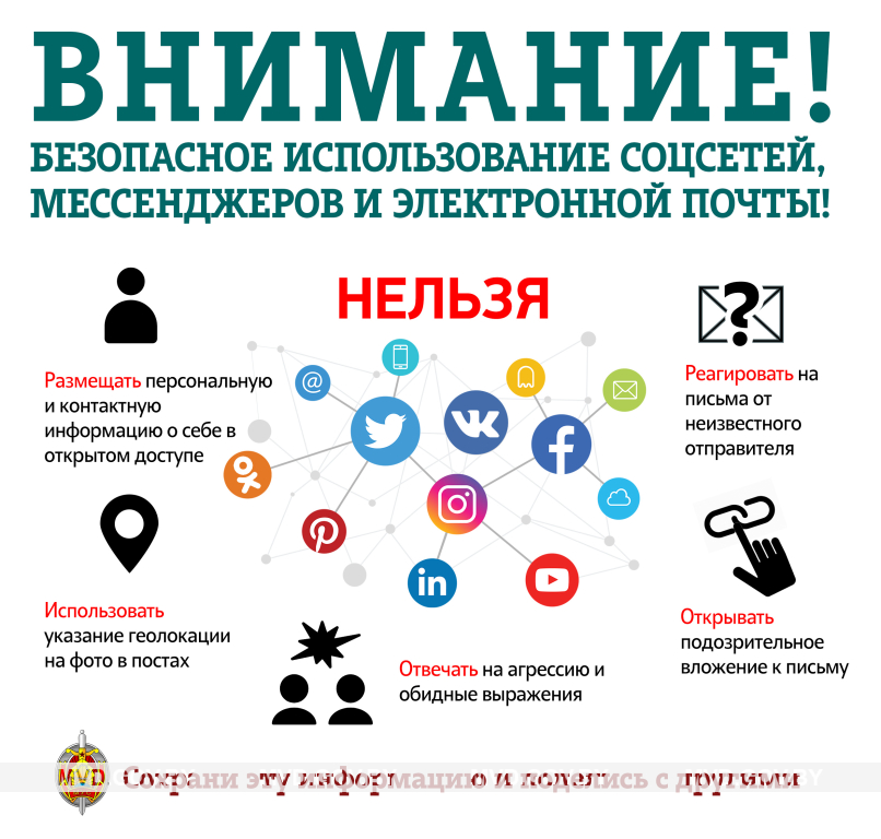 • Для социальной сети, почты и других сайтов необходимо использовать разные пароли. Тогда если тебя взломают, то злоумышленники получат доступ только к одному месту, а не во все сразу.