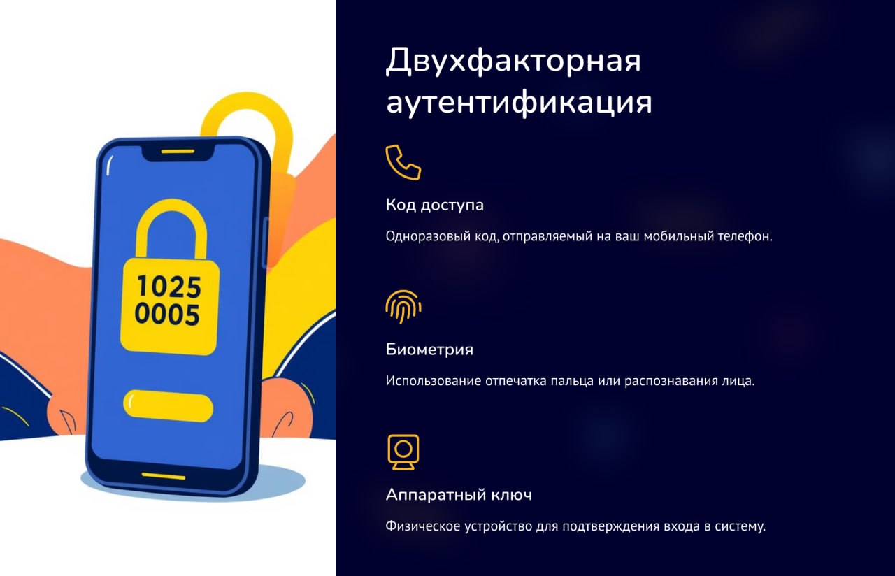 • Используй двухэтапную авторизацию. Это когда помимо пароля нужно вводить код, присылаемый по SMS;