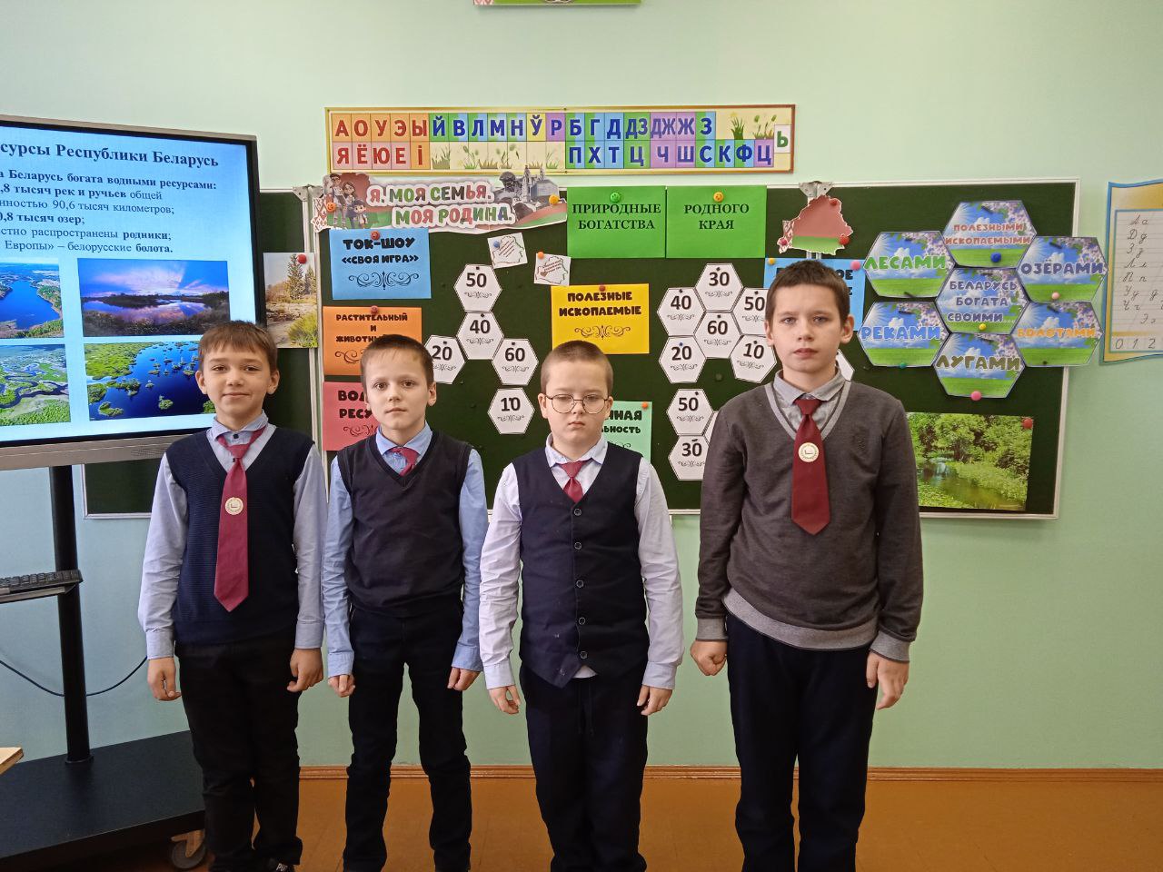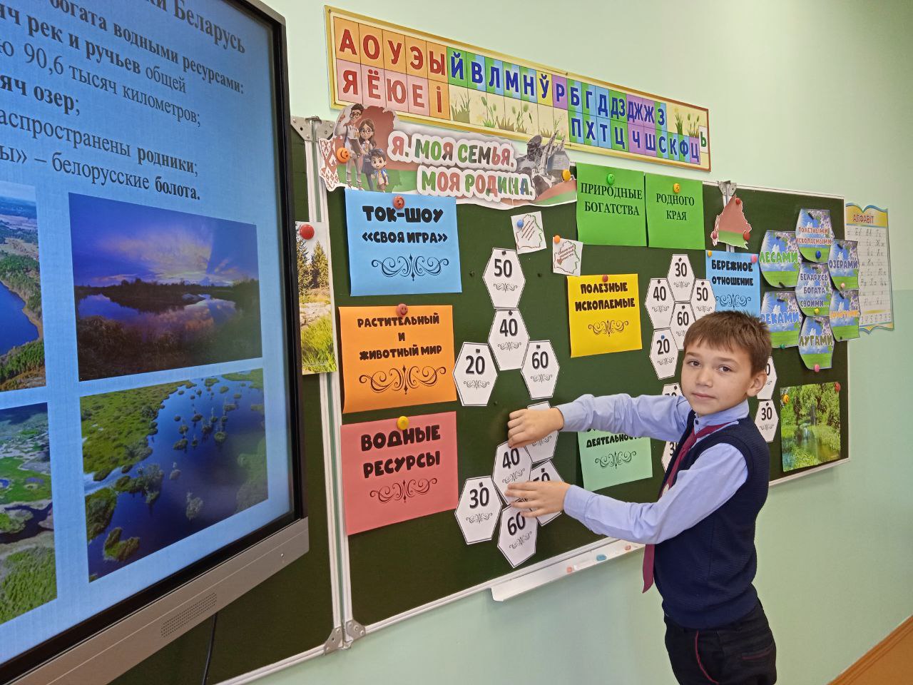 18 ноября в 4 классе ГУО «Мижевичская средняя школа» в рамках программы «Я. Моя семья. Моя Родина» прошла «Своя игра» по теме «Природные богатства Беларуси», в ходе которой ребята отправились в увлекательное путешествие по нашей прекрасной Беларуси, чтобы поближе познакомиться с ее природными богатствами. Наша страна славится своими лесами, озерами, реками и живописными пейзажами. Мы поговорили о том, как важно беречь и охранять эту красоту для будущих поколений.