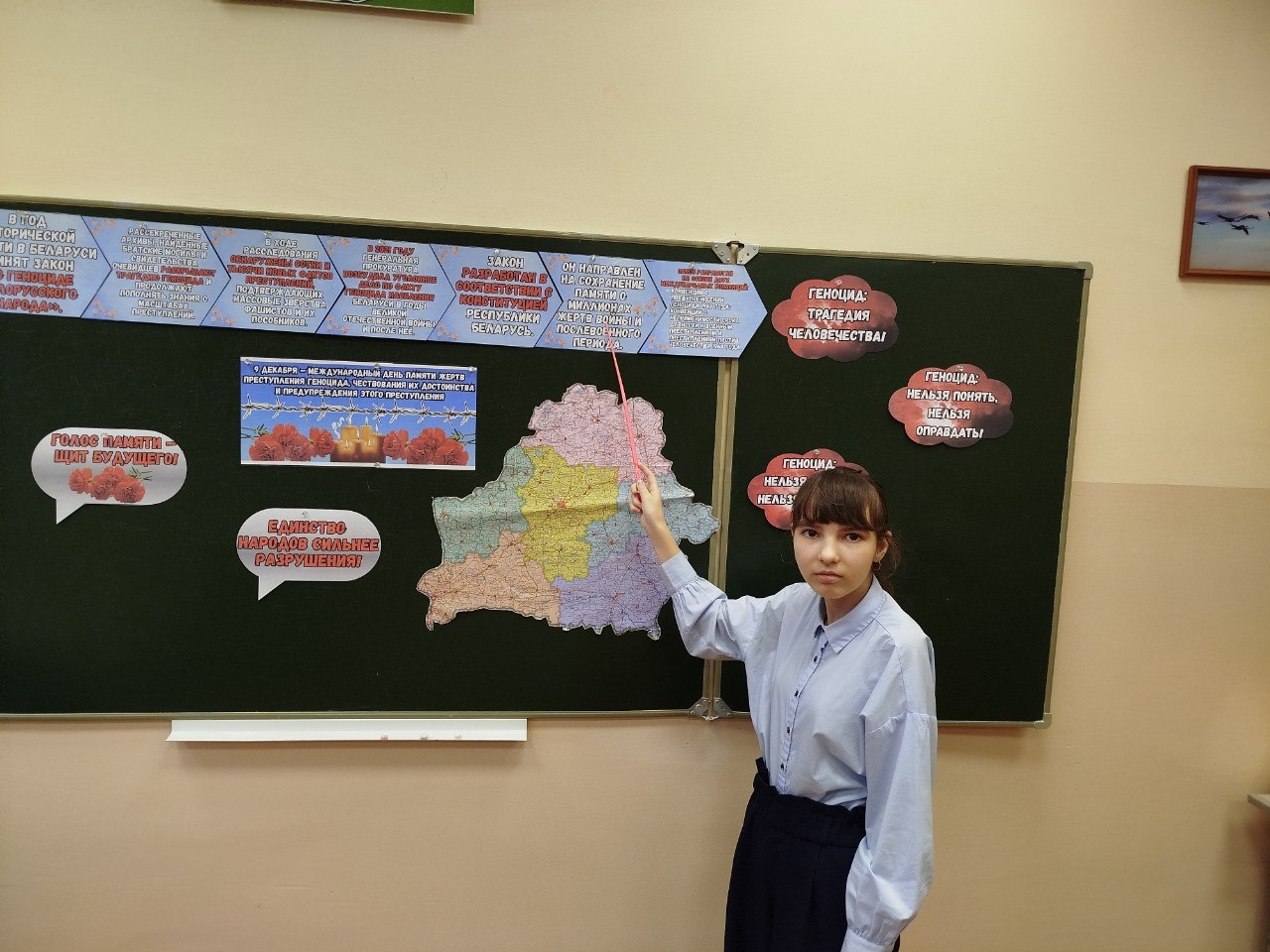 9 снежня адзначаецца Міжнародны дзень памяці ахвяр злачынства генацыду, ушанавання іх годнасці і папярэджанне гэтага злачынства. З гэтай нагоды ў Міжэвіцкай сярэдняй школе прайшоў шэраг мерапрыемстваў. У школьным музеі адбыўся мітынг-рэквіем "У сэрцах навекі памяць захаваем". Эстафету мерапрыемстваў працягнулі тэматычныя інфармацыйныя гадзіны і марафон " Генацыд нельга забыць, нельга дараваць". У гэты дзень смутку і памяці пра тых, хто пакутаваў ад жахаў генацыду, успаміналі ахвяр і выказвалі салідарнасць з тымі, хто перажыў гэтую трагедыю. Важна помніць пра тыя жудасныя падзеі, каб прадухіліць такія злачынствы ў будучым.
