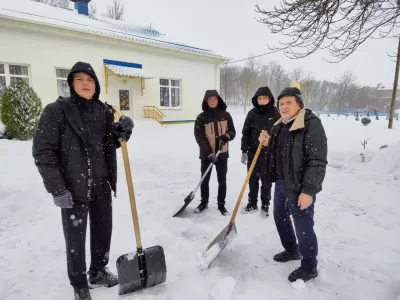 "Расчистим снег вместе!" - так решили педагогический и ученический коллективы Мижевичской средней школы. Ребята и работники школы дружно вышли на пришкольную территорию, чтобы освободить её от снега. Не только старшеклассники, но и ребята средних классов просили взять их в помощь. Помочь убрать снег пожилому человеку, расчистить территорию мест воинских захоронений, освободить от снега места подъезда к школе и детскому саду - вот список наших дел.