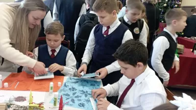 Сегодня учащиеся Мижевичской средней школы Слонимского района стали участниками ежегодного православного фестиваля "Христославы-2026". Ребята приняли участие в мастер-классах по изготовлению рождественских сувениров, посмотрели представления народного театра "Батлейка". В зрительном зале всех ждала интересная литературно-музыкальная композиция о великом чуде - рождении Христа и чудесах, которые можно увидеть вокруг, стоит лишь быть чуть наблюдательнее и внимательнее к тем, кто рядом. А кульминацией праздника стало награждение победителей конкурсов православной направленности: вручение им дипломов и сладких призов.