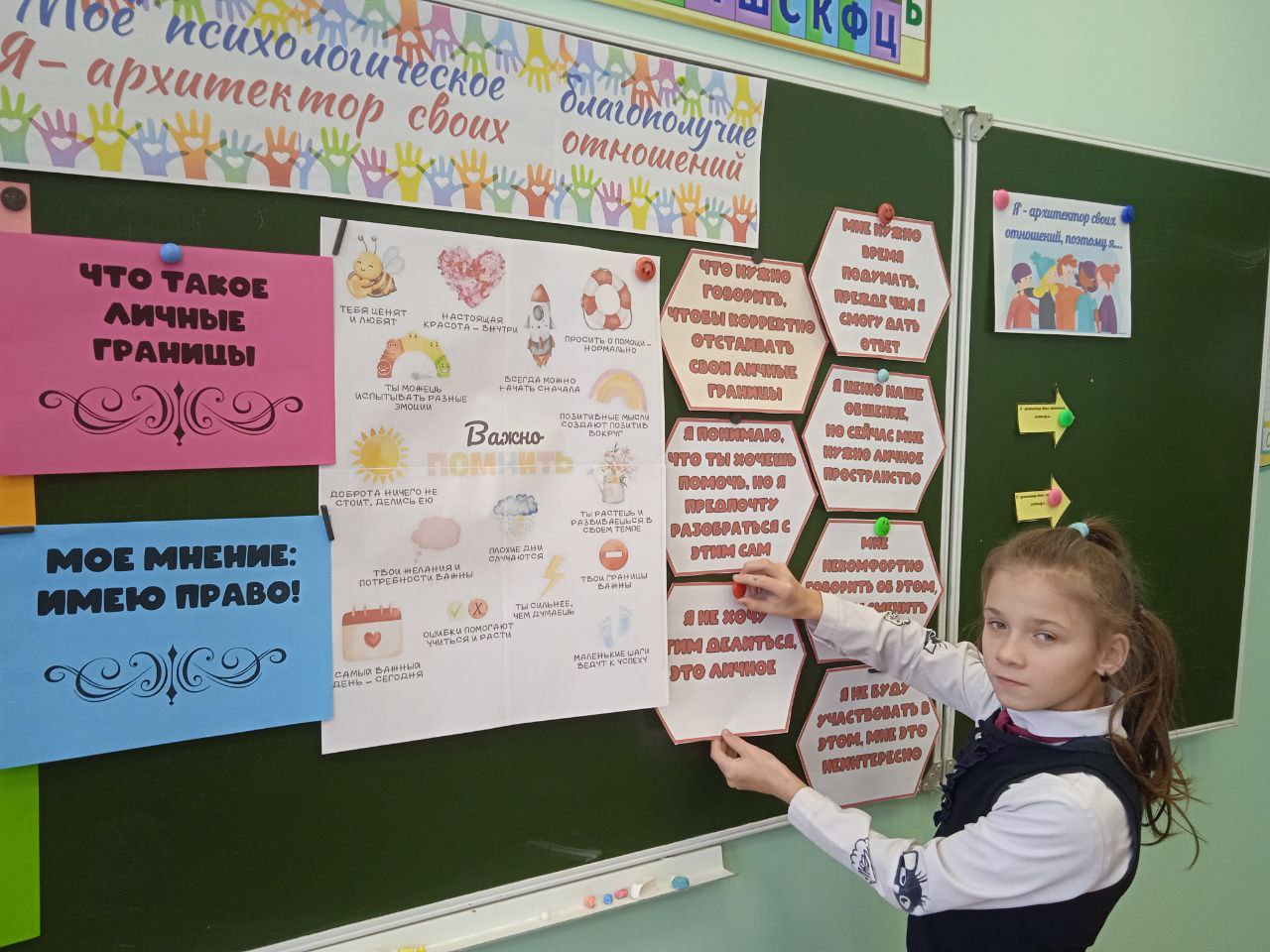 С целью формирования навыков конструктивного общения, осознания личной ответственности за эмоциональный климат в классе и семье, а также развития умения выстраивать здоровые отношения для учащихся 4 класса Мижевичской средней школы 10 февраля был проведен классный час в рамках занятий "Моё психологическое благополучие и помощь сверстникам в кризисной ситуации" на тему "Я – архитектор своих отношений". В ходе занятия ребята активно обсуждали, как наши слова, поступки и отношение к другим влияют на атмосферу вокруг, поговорили о том, что, как настоящие архитекторы, каждый из нас сам строит свои отношения – с друзьями, родителями, учителями. Особое внимание уделили личным границам: что это такое, почему важно их уважать и как вежливо, но твёрдо говорить "нет", если чувствуешь дискомфорт. Подводя итог, учащиеся сделали вывод, что строить хорошие отношения – это не случайность, а ежедневная работа.