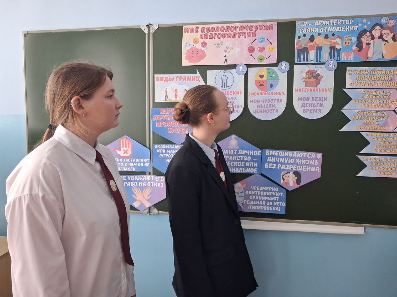 С целью формирования навыков защиты личного пространства, уважения границ других, критического анализа информации и последствий своих действий в 11 классе прошло занятие " Я- архитектор своих отношений". В ходе мероприятия учащиеся определили базовые понятия: " личные границы", " влияние", "ответственность за выбор". Одиннадцатиклассницы учились развивать саморефлексию и умение делать осознанный выбор. Занятие способствовало формированию чувств самоуважения и понимания ценности собственного психологического комфорта.