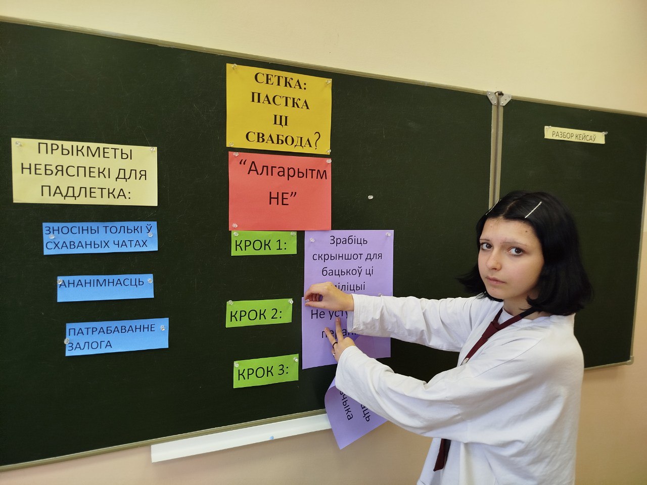 24 лютага ў 7 класе Міжэвіцкай сярэдняй школы прайшоў інтэрактыўны ўрок-расследаванне "Сетка: пастка ці свабода?". Класная гадзіна пачалася з "разбору кейсаў": вучні абмяркоўвалі, як выглядае прапанова аб "лёгкім заробку". Падчас "расследавання" шукалі доказы "Пасткі" (небяспекі ў інтэрнэце) і "Свабоды"(магчымасці). На ўроку-расследаванні сямікласнікі пазнаёміліся з прыметамі небяспекі для падлеткаў у інтэрнэце, склалі "Алгарытм НЕ". Напрыканцы класнай гадзіны навучэнцам было прапанавана напісаць ліст сябру, які паддаўся на прапанову "лёгкага заробку". Класная гадзіна садзейнічала фарміраванню навыкаў бяспечных паводзін у лічбавым асяроддзі і ўстойлівага імунітэту да прапаноў аб незаконным заробку (распаўсюджванні наркотыкаў).
