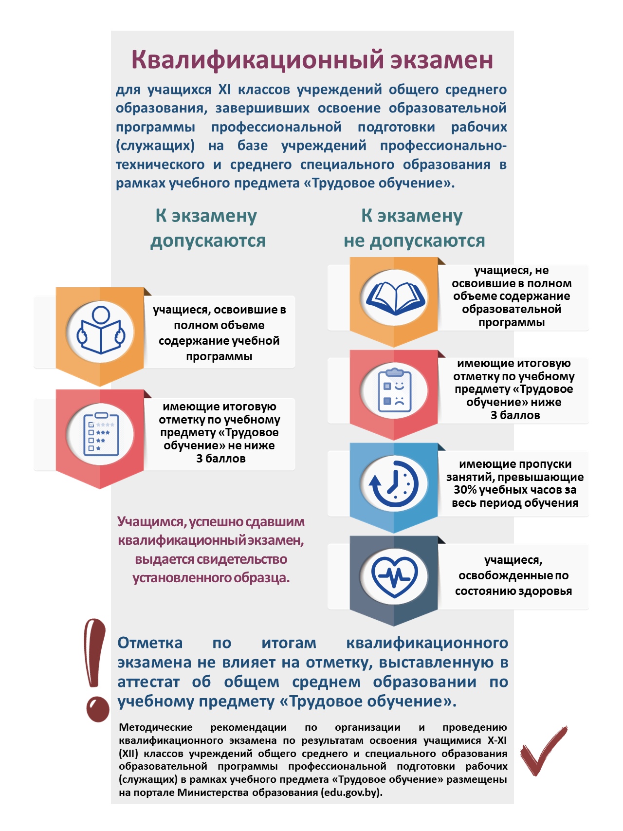 Выпускной экзамен по трудовому обучению для учащихся первого отделения специальной школы, специальной школы интерната для обучающихся с интеллектуальной недостаточностью проводится по трудовому обучению в виде выпускного экзамена в основные сроки – с 1 по 10 июня 2026 г., в иные сроки – с 17 по 21 августа 2026 г.