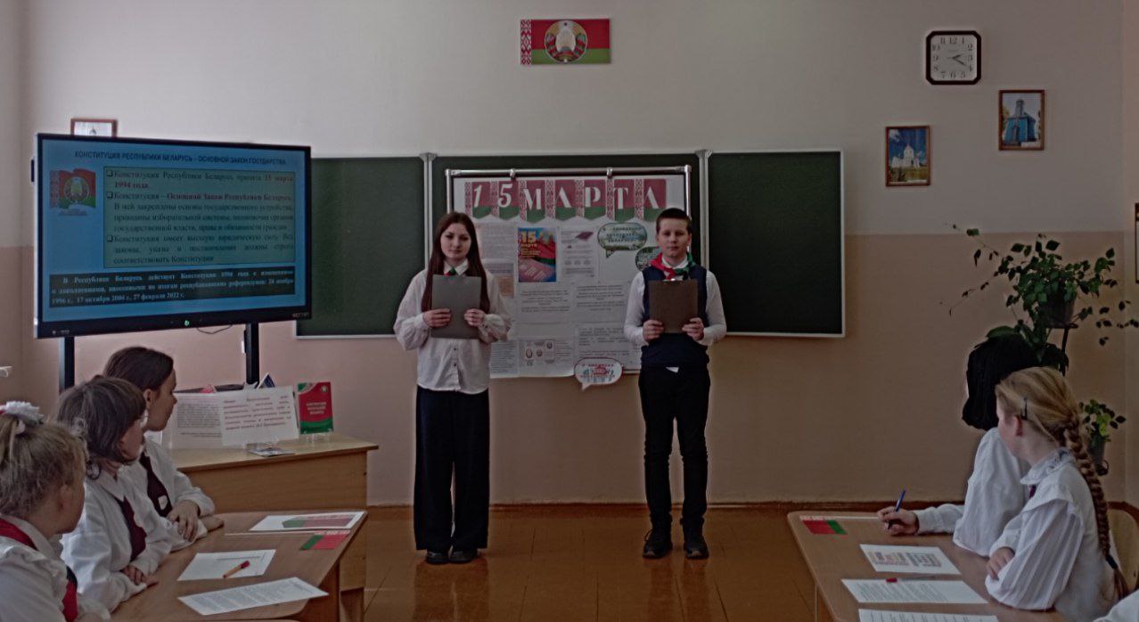 13 сакавіка ў Міжэвіцкай сярэдняй школе прайшлі адзіныя ўрокі, прымеркаваныя да дзяржаўнага свята - Дня Канстытуцыі. Асаблівую ўвагу на ўроках надавалі таму, што Канстытуцыя — гэта не проста дакумент, а гарант міру і стабільнасці нашага грамадства. Быць грамадзянінам — значыць не толькі карыстацца правамі, але і несці адказнасць за будучыню сваёй Радзімы.