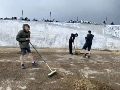 В рамках обеспечения взаимодействия учреждения образования с сельхозпредприятием КСУП "Имени Дзержинского" учащиеся и педагоги школы принимают участие в наведении порядка на земле и производственных объектах хозяйства. Ранее команда коллектива учреждения была задействована на работах по благоустройству на территории мастерских. Сегодня новое задание - чистка сенажных ям от грязи, мусора, старого сенажа. Рабочие руки в напряженную весеннюю пору не бывают лишними. А ещё такая работа воспитывает у ребят любовь к сельскохозяйственному труду и уважение к людям труда, дисциплинирует, учит совместной деятельности, прививает ответственность.