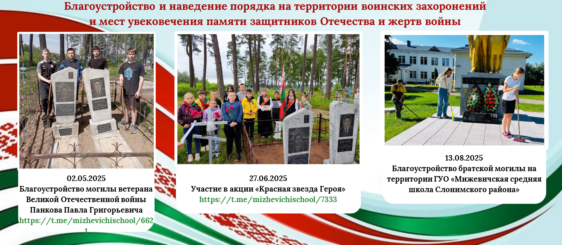 24 октября учащиеся Мижевичской средней школы приняли участие в благоустройстве братской могилы на территории агрогородка Острово.