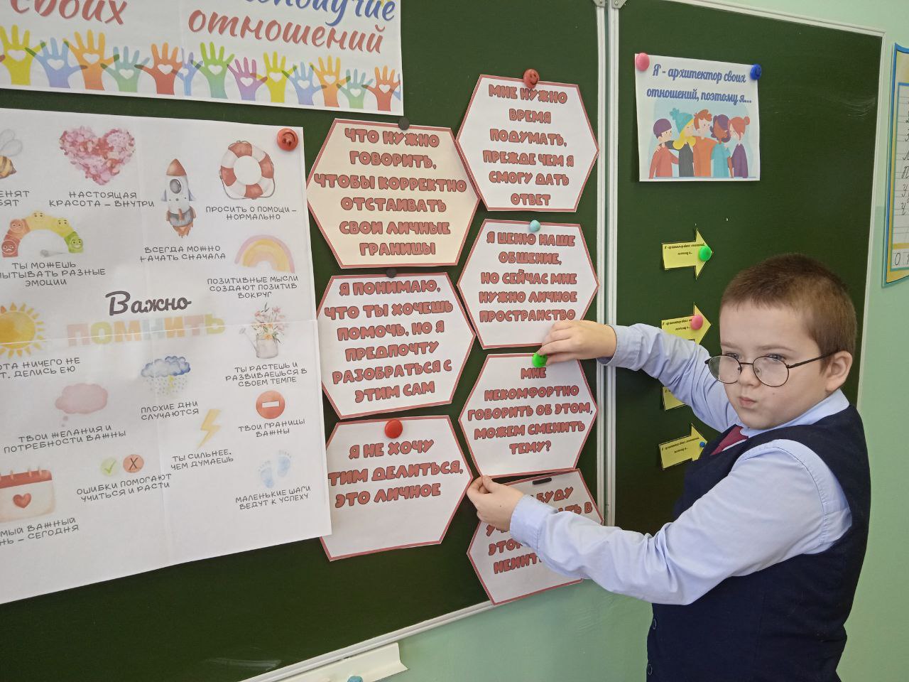10 лютага ў 7 класе ў рамках праграмы " Мой псіхалагічны дабрабыт" прайшла класная гадзіна "Я – архітэктар сваіх адносін", якая была прысвечана не толькі тэорыі, але і адпрацоўцы канкрэтных жыццёвых навыкаў. У цэнтры ўвагі аказалася тэма асабістых межаў — уменне адчуваць, дзе заканчваюцца ўласныя эмоцыі і адказнасць і пачынаюцца чужыя. Падчас выканання практыкаванняў навучэнцы вызначалі свае асабістыя межы, апісвалі, што для іх з'яўляецца "недатыкальнай тэрыторыяй" (пачуцці, асабістая прастора, перакананні).