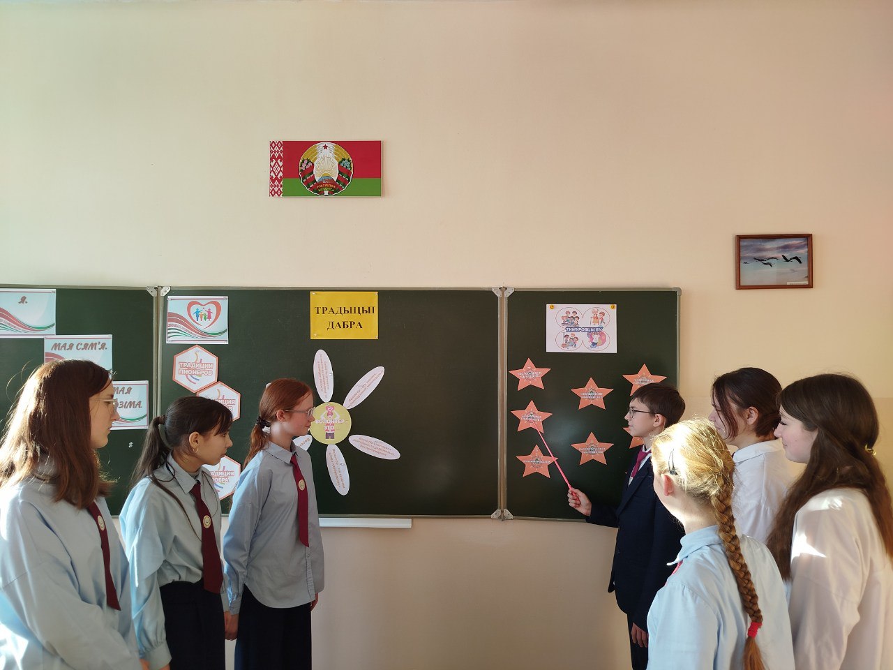 «Традыцыі дабра» - пад такой назвай 20 студзеня ў 7 класе прайшла класная гадзіна ў рамках праграмы "Я. Мая сям'я. Мая Радзіма". Галоўная мэта занятку - выхаванне міласэрнасці, чалавечнасці, умення прыйсці на дапамогу. Выкананне прапанаваных сямікласнікам заданняў садзейнічала фарміраванню ў іх актыўнай жыццёвай пазіцыі. Навучэнцы ў групах працавалі з прыказкамі і прымаўкамі пра дабро, выканалі практыкаванне "Рамонак" на вызначэнне паняцця "валанцёр". Вучні яшчэ раз пераканаліся ў тым, што дабрыня дапамагае быць паспяховымі ў жыцці.