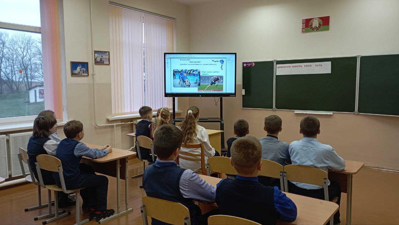 В рамках недели, посвящённой Международному Дню инвалидов, 2 декабря во 2-4 классах Мижевичской средней школы прошёл урок доброты, в ходе которого дети познакомились с особенностями восприятия окружающего мира слабовидящими людьми, узнали об особенностях людей с нарушениями зрения и слуха, способах общения с ними, умений соблюдать этические нормы при общении с людьми с интеллектуальной недостаточностью.