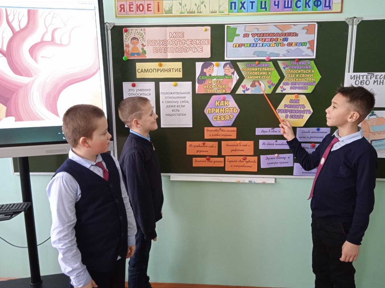 25 ноября в 4 классе Мижевичской средней школы прошёл классный час "Я уникален. Учимся принимать себя" в рамках программы "Моё психологическое благополучие". Различные игры и упражнения были направлены на то, чтобы помочь детям понять свою уникальность, принять свои сильные стороны и недостатки, а также развить навыки, способствующие психологическому благополучию, такие как самопринятие, позитивные отношения с окружающими и личностный рост.  Закончили обсуждение на позитивной ноте, подчеркнув, что каждый человек уникален и каждый заслуживает любви и принятия.