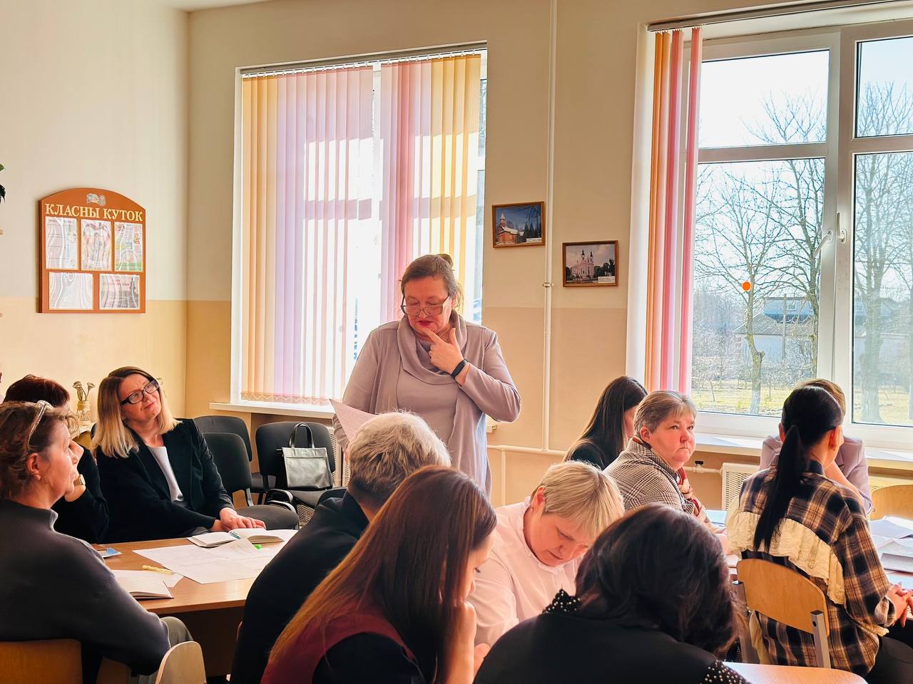 18 сакавіка на базе дзяржаўнай установы адукацыі "Міжэвіцкая сярэдняя школа Слонімскага раёна" прайшло пасяджэнне раённага вучэбна-метадычнага аб'яднання настаўнікаў беларускай мовы і літаратуры па тэме "Рэалізацыя выхаваўчага патэнцыялу ўрокаў беларускай мовы і літаратуры для фарміравання ў вучняў праз змест вучэбнага матэрыялу сістэмы маральных каштоўнасцей, сацыяльна адобраных паводзін, спосабаў прадуктыўнай камунікацыі", мэтай якога стала ўдасканаленне прафесійнай кампетэнтнасці і майстэрства настаўнікаў у сферы фарміравання ў вучняў на ўроках беларускай мовы і літаратуры сі