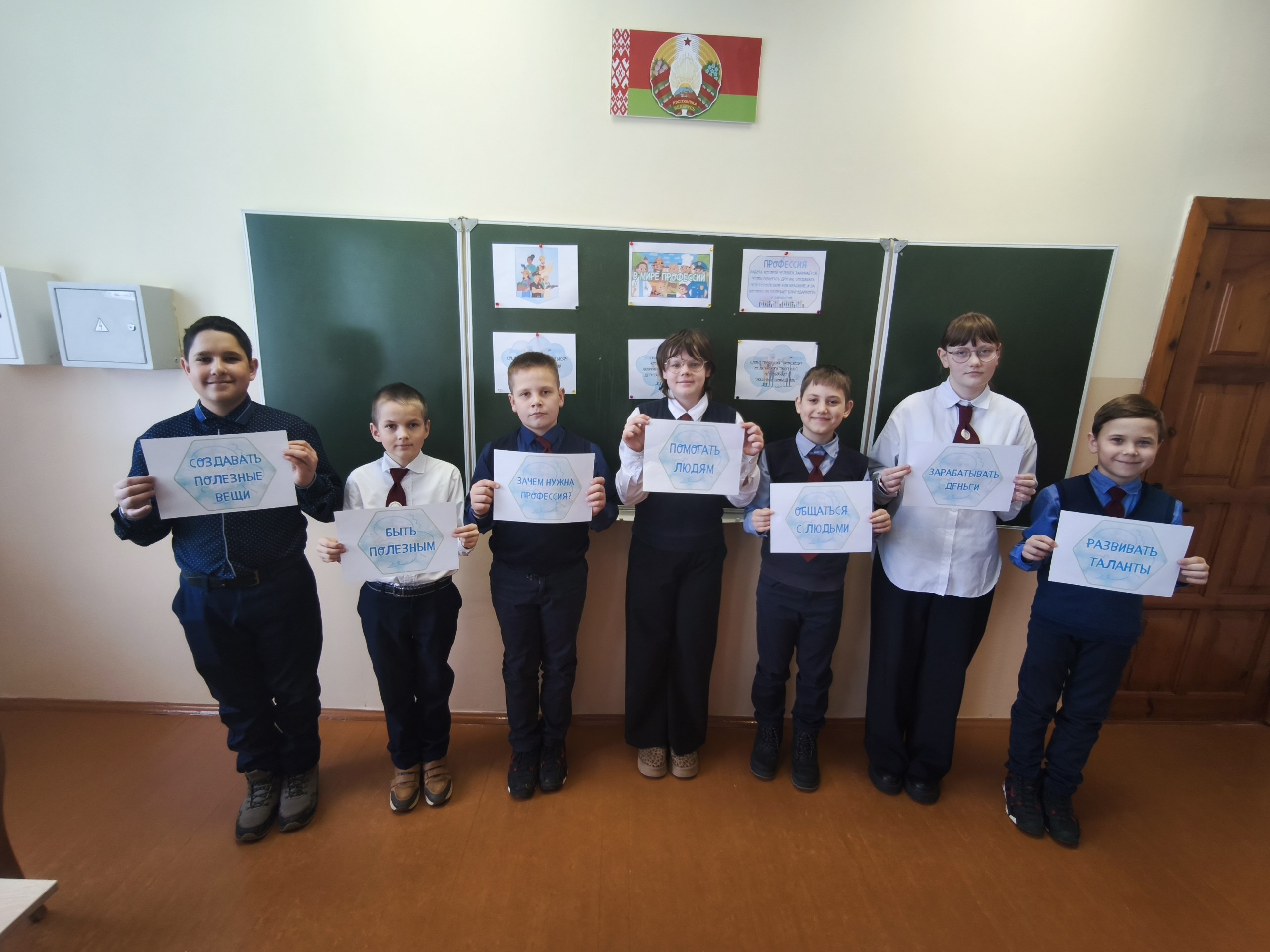 На занятии с психологом «В мире профессий» ученики 5–6 классов Мижевичской средней школы рассуждали о том, зачем нужна профессия человеку. Учащиеся  пришли к выводу, что она помогает не только зарабатывать деньги, общаться,  развивать таланты, но и  даёт возможность быть полезным и создавать нужные вещи для людей!