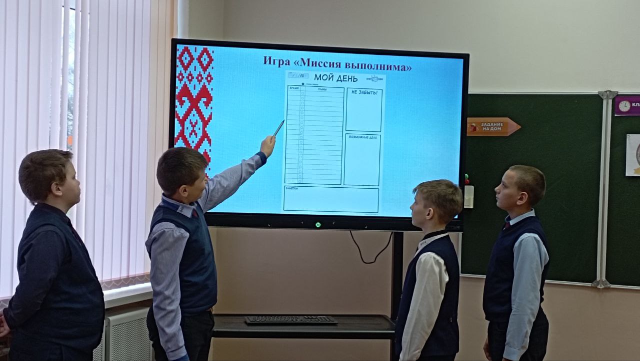 19 ноября в рамках программы "Я. Моя семья. Моя Родина" в 6 классе прошёл классный час "Как всё успеть?" Учащиеся, выполняя предложенные упражнения и участвуя в игре, имели возможность расширить свои представления о значимости эффективного управления личным временем и навыков планирования для успешной социализации. В завершение тематического занятия каждый из шестиклассников давал самому себе советы, что нужно делать, чтобы всё успевать.