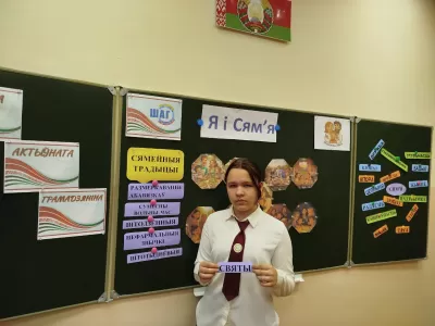 27 лістапада ў 7 класе ў рамках інфармацыйна - адукацыйнага праекта "ШАГ" прайшла гадзіна зносін "Традыцыі маёй сям'і", падчас якой навучэнцы разважалі аб каштоўнасцях сям'і, расказвалі аб традыцыях сваёй сям'і. Сямікласнікі выказвалі свае меркаванні аб функцыях сям'і, яе значэнні ў жыцці кожнага чалавека. Вучні збіралі "рассыпаныя" прыказкі пра сям'ю, тлумачылі іх сэнс, а таксама з цэглаў- каштоўнасцей "будавалі" дом шчаслівай сям'і. Сямікласнікі аднагалосна пагадзіліся з вялікім кітайскім філосафам Канфуцыем, які пісаў: "Дзяржава - гэта вялікая сям'я, а сям'я - гэта маленькая дзяржава".