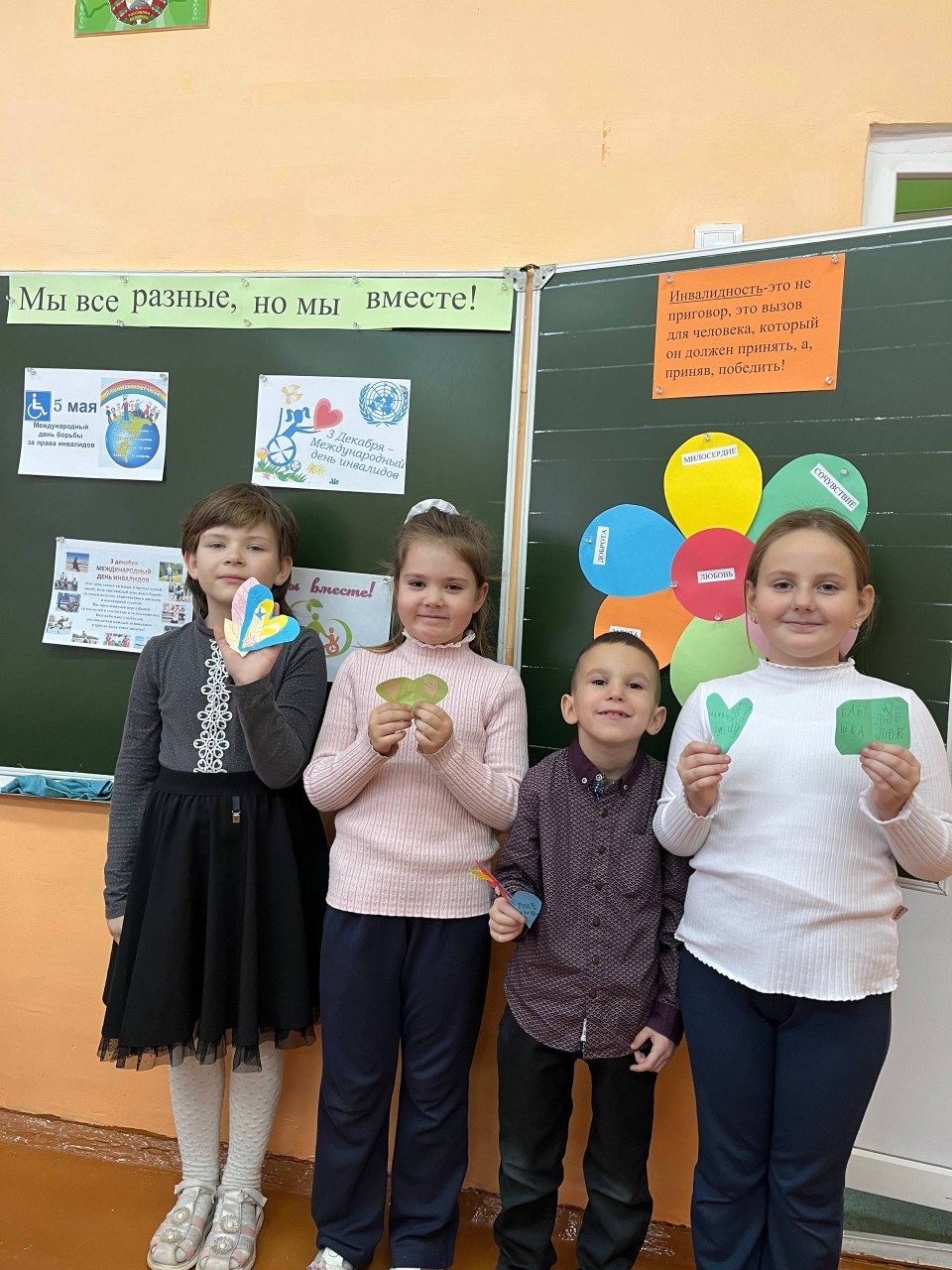 В 1 классе прошёл информационный час на тему: "Мы все разные, но мы вместе!" Учащиеся познакомились с понятием "инвалид" и значением слов "люди с ограниченными возможностями", а также расширили представление о людях слабовидящих, незрячих, слабослышащих. Цель мероприятия — показать, что люди с ограниченными возможностями здоровья — такие же полноценные члены общества, которым нужна помощь и поддержка, а не жалость.