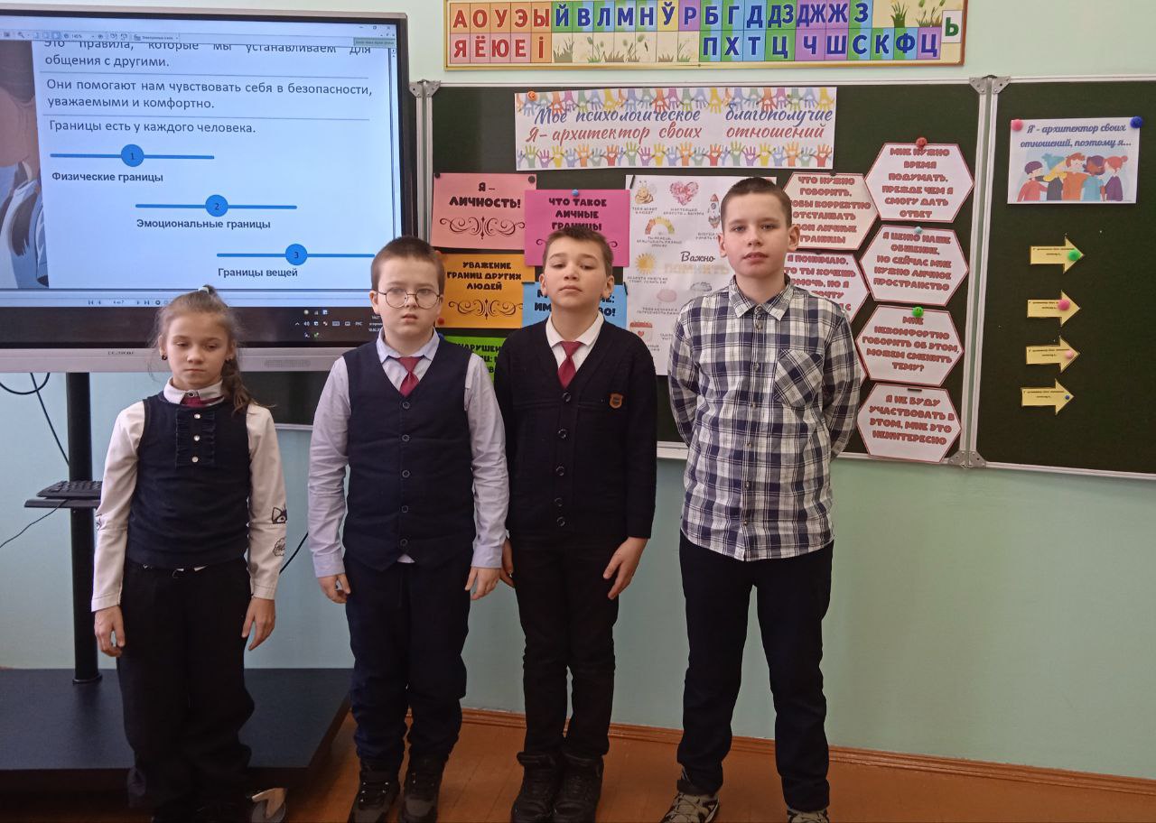 С целью формирования навыков конструктивного общения, осознания личной ответственности за эмоциональный климат в классе и семье, а также развития умения выстраивать здоровые отношения для учащихся 4 класса Мижевичской средней школы 10 февраля был проведен классный час в рамках занятий "Моё психологическое благополучие и помощь сверстникам в кризисной ситуации" на тему "Я – архитектор своих отношений". В ходе занятия ребята активно обсуждали, как наши слова, поступки и отношение к другим влияют на атмосферу вокруг, поговорили о том, что, как настоящие архитекторы, каждый из нас сам строит свои отношения – с друзьями, родителями, учителями. Особое внимание уделили личным границам: что это такое, почему важно их уважать и как вежливо, но твёрдо говорить "нет", если чувствуешь дискомфорт. Подводя итог, учащиеся сделали вывод, что строить хорошие отношения – это не случайность, а ежедневная работа.