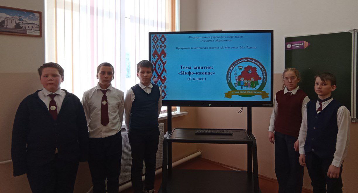 В 6 классе прошёл классный час "Инфо-компас" в рамках программы "Я. Моя семья. Моя Родина ", который содействовал обучению этикету в сети, развитию критического мышления. Учащиеся рассуждали: «Всем ли источникам информации можно доверять?» Шестиклассники высказывали своё мнение о том, какие источники информации считаются надёжными.