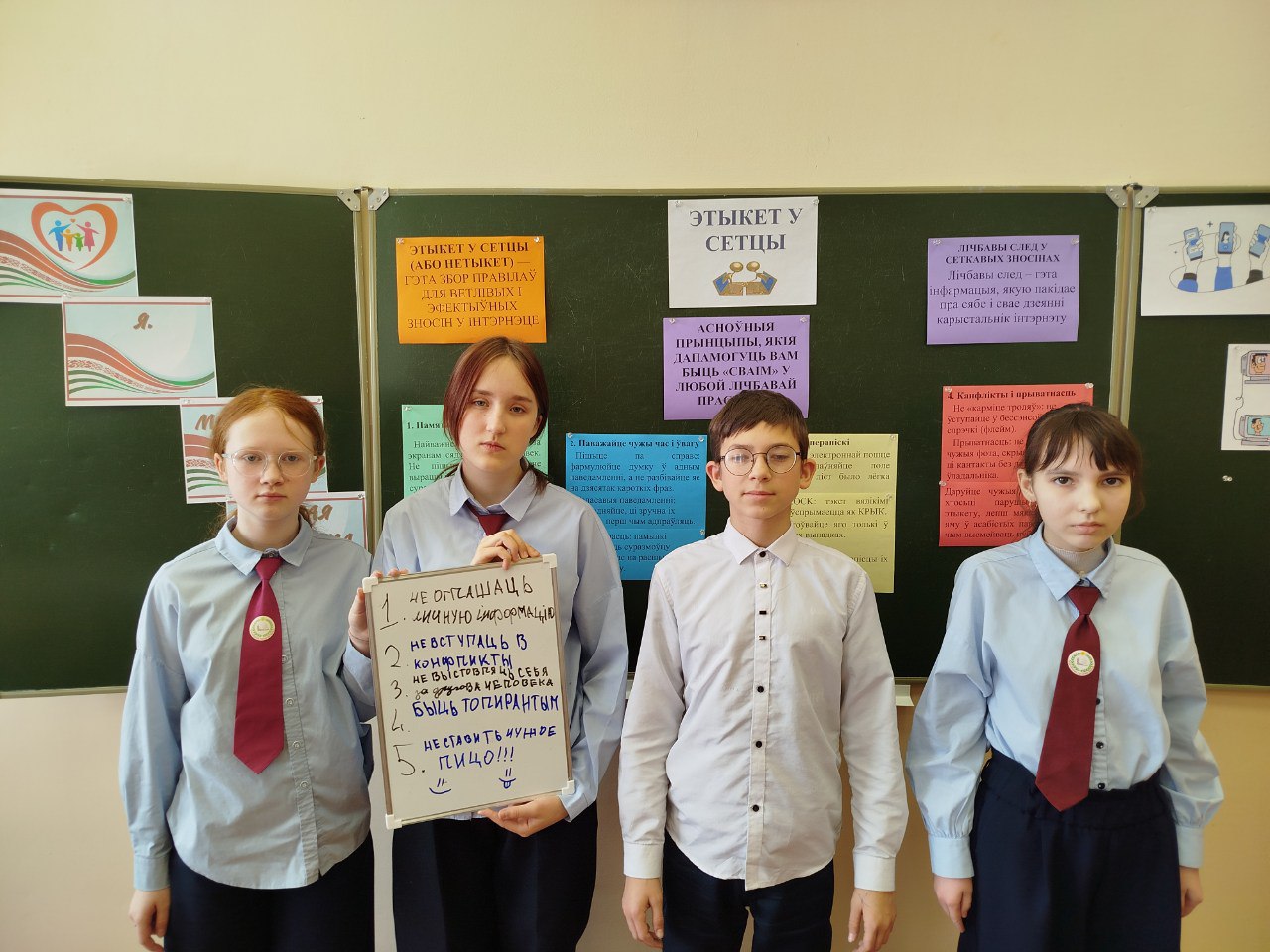 17 лютага ў 7 класе Міжэвіцкай сярэдняй школы ў рамках праграмы " Я. Мая сям'я.Мая Радзіма" прайшла класная гадзіна "Сеткавы этыкет", накіраваная на фарміраванне агульнапрынятых маральных нормаў паводзін у сетцы Інтэрнэт, культуры адказнага і этычнага выкарыстання Інтэрнэту, а таксама на павышэнне інфармацыйнай адукаванасці навучэнцаў пры карыстанні рэсурсамі сеткі Інтэрнэт. Папярэдняе апытанне сямікласнікаў паказала, што ўсе яны з'яўляюцца актыўнымі карыстальнікамі інтэрнэту, і таму тэма класнай гадзіны з'явілася актуальнай. Навучэнцы, працуючы ў групах, складалі ўласныя памяткі сеткавага этыкету. Пазнаёміўшыся з матэрыяламі Дзіцячага прававога сайта, вучні даведаліся аб тым, як небяспечна для сябе карыстацца інтэрнэтам. Напрыканцы занятку навучэнцы прыйшлі да высновы, што інтэрнэт — гэта не проста экран смартфона, гэта прастора, дзе мы пакідаем свой след, і таму трэба ствараць такі інтэрнэт, у якім самім будзе прыемна знаходзіцца.