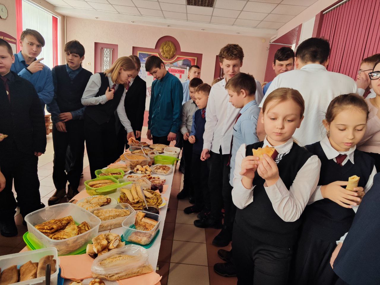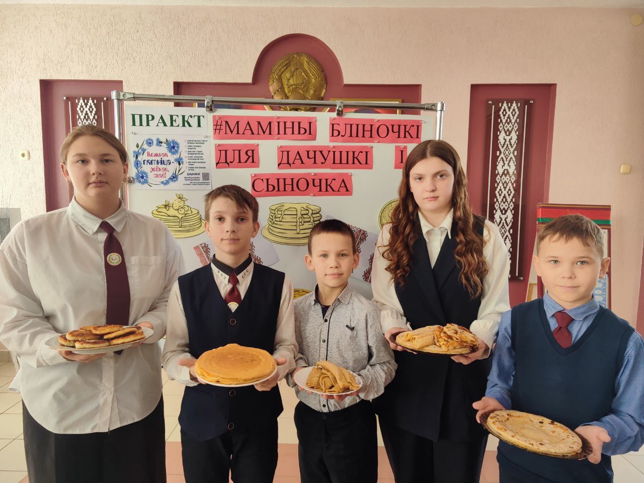 27 лютага ў Міжэвіцкай сярэдняй школе ў рамках праекта "Кожная пятніца - роднае, сваё!" прайшоў кулінарны фэст "Маміны бліночкі для дачушкі і сыночка".Пах свежых бліноў, ванілі разляцеўся па школе, калі на сталах з' явіліся маміны бліны - сімвал цеплыні і клопату: карункавыя бліны, у форме сэрцак, розных памераў, з розным начыннем. А побач - духмянае варэнне. І вучні, і настаўнікі сталі ўдзельнікамі кулінарнага фэсту. Дэгустацыя прайшла на "ўра", бо на сталах не засталося ніводнага блінчыка. Мерапрыемства садзейнічала папулярызацыі беларускай гасціннасці і кулінарнага вопыту, які перадаецца ад маці да дзяцей. Дарэчы, многія вучні самі гатавалі бліны.Можа, таму і панаваў настрой вясёлага беспарадку, смеху і захаплення ад таго, што "зрабіў гэта сам!" Мерапрыемства з такой пяшчотнай назвай пакінула светлы след у душы кожнага ўдзельніка фэсту.