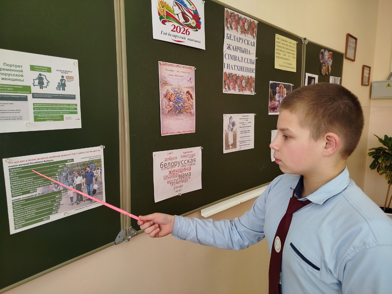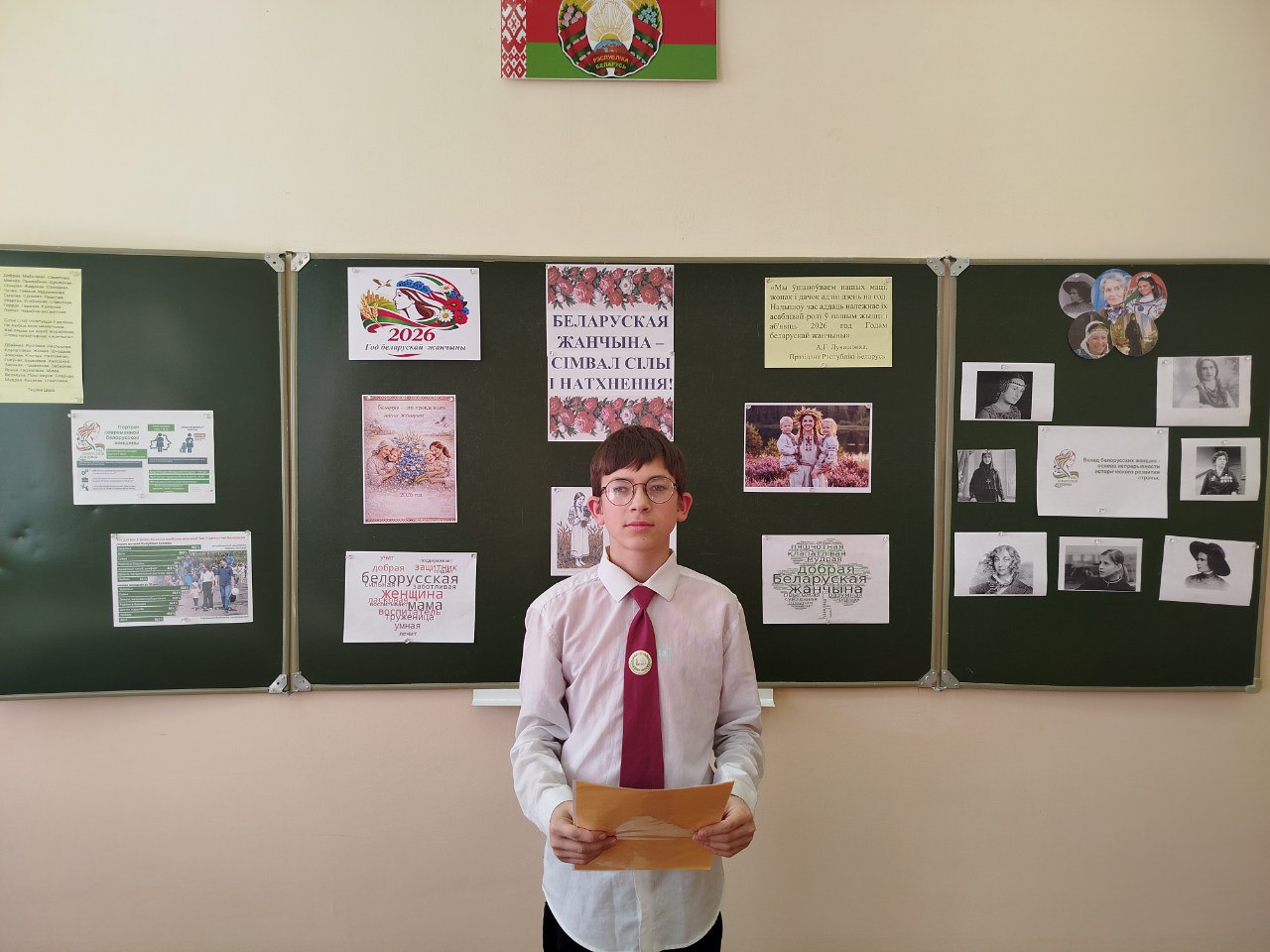 5 сакавіка ў 7 і 8 класах Міжэвіцкай сярэдняй школы прайшоў Адзіны ўрок "Беларуская жанчына - сімвал сілы і натхнення", прымеркаваны да святочнага дня - Дня жанчын. У Год беларускай жанчыны асабліва важна адзначыць яе ролю ў нашым жыцці. На ўроку навучэнцы ўзгадалі не толькі знакамітых жанчын Беларусі, іх ролю ў гісторыі нашай краіны. Школьнікі ўпэўніліся, што сучасныя жанчыны паспяхова сумяшчаюць выхаванне дзяцей і кар'еру. Вучні гаварылі і пра маці - напэўна, самай галоўнай "прафесіі" ў жыцці жанчыны, пералічылі, колькі прафесій уключае ў сябе "мама". Навучэнцам было прапанавана запоўніць "белыя плямы" ў лісце "Беларускія жанчыны". Выкананне задання паказала, што вучні ўпэўнены: беларуская жанчына - гэта не проста вобраз з кніжак. Гэта жывая, сапраўдная сіла. Гэта сіла кахання, сіла мужнасці, сіла таленту. Беларуская жанчына пераўтварае свет ціхім святлом сваёй душы.
