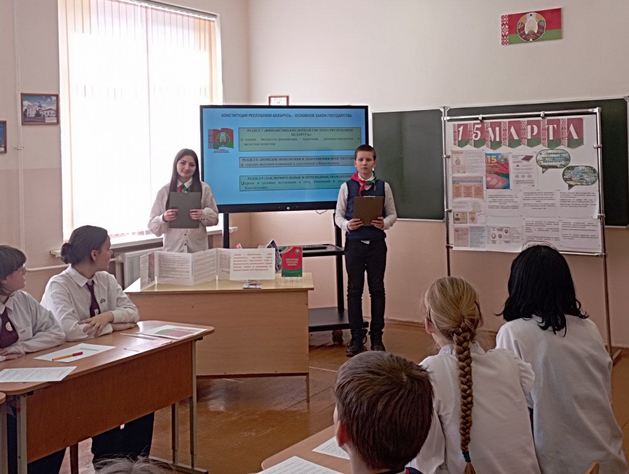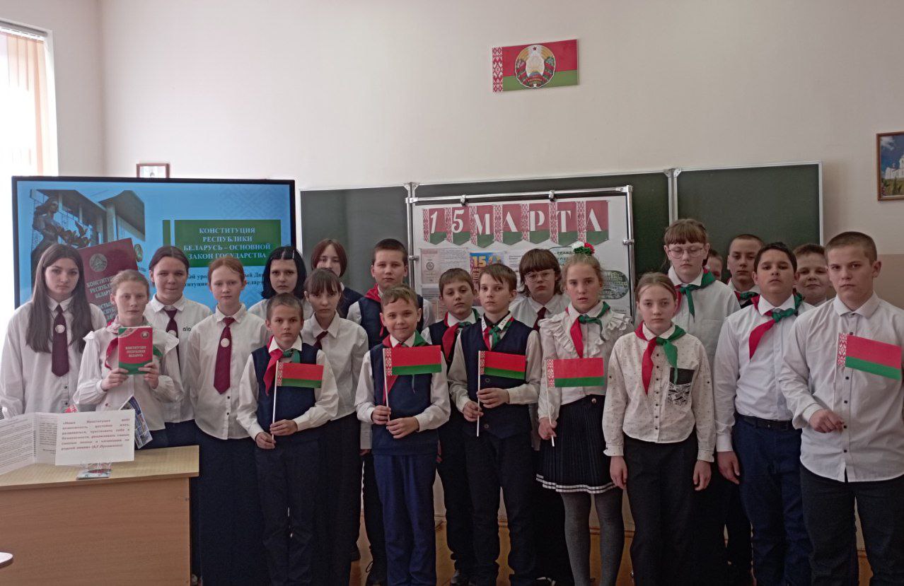 13 сакавіка ў Міжэвіцкай сярэдняй школе прайшлі адзіныя ўрокі, прымеркаваныя да дзяржаўнага свята - Дня Канстытуцыі. Асаблівую ўвагу на ўроках надавалі таму, што Канстытуцыя — гэта не проста дакумент, а гарант міру і стабільнасці нашага грамадства. Быць грамадзянінам — значыць не толькі карыстацца правамі, але і несці адказнасць за будучыню сваёй Радзімы.