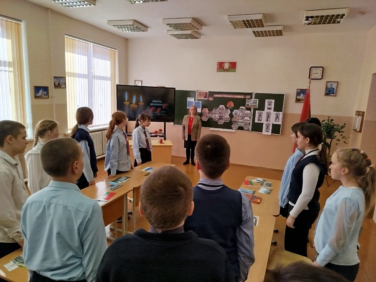 Адзіны ўрок, прысвечаны памяці ахвяр Хатынскай трагедыі, прайшоў у 5-8 класах Міжэвіцкай сярэдняй школы 19 сакавіка. «Аб чым звоняць званы Хатыні?» — назва мерапрыемства, якая падкрэслівае сімвалізм мемарыяльнага комплексу. Урок накіраваны на паглыбленне ведаў вучняў аб гістарычным мінулым беларускага народа, трагічных падзеях у Хатыні і фактах генацыду ў гады Вялікай Айчыннай вайны. Навучэнцы ў чарговы раз упэўніліся, што Хатынь — гэта не проста трагедыя адной вёскі, а сімвал генацыду беларускага народа. Веданне гэтых фактаў неабходна, каб не дапусціць паўтарэння жахаў нацызму ў будучыні. Праз асэнсаванне жорсткасці вайны вучні прыйшлі да разумення, што мірнае неба — гэта найвышэйшы здабытак, які трэба берагчы і абараняць.