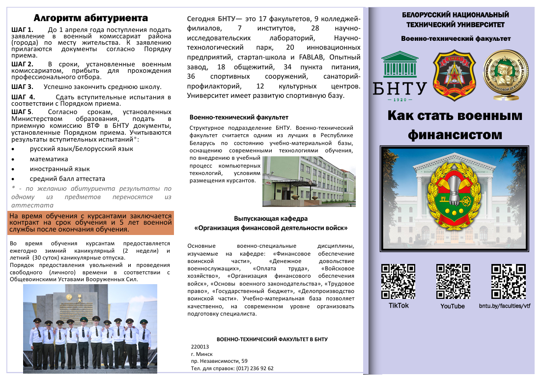 Как стать военным финансистом (БНТУ, Военно-технический факультет) (подробнее)
