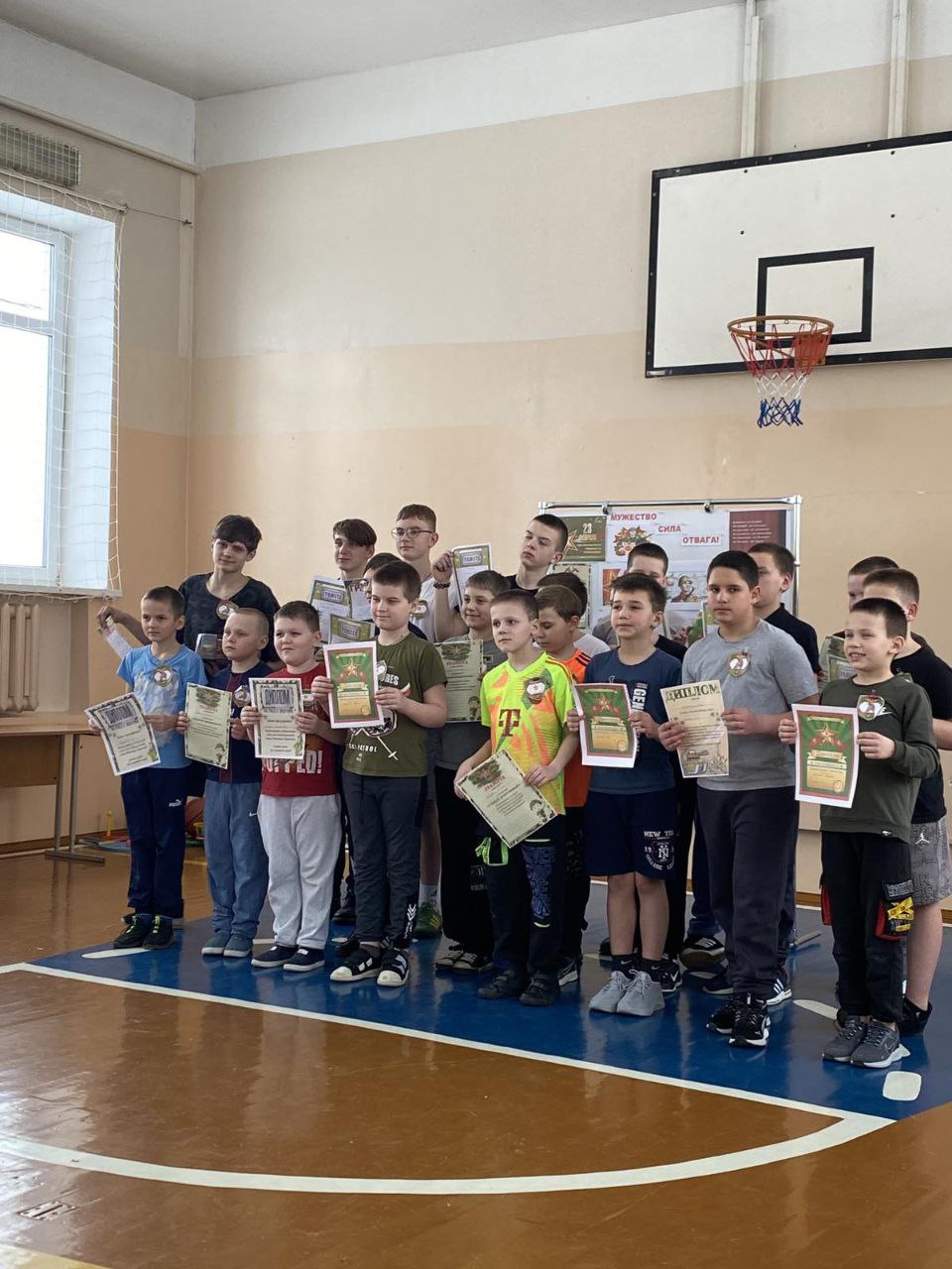 23 лютага ў Дзень абаронцаў Айчыны ў Міжэвіцкай сярэдняй школе прайшло спартыўна-забаўляльнае свята: адбылося спаборніцтва паміж дзвюма камандамі хлопчыкаў - "Цімураўцамі" і "Спартанцамі". Мерапрыемства пачалося з прывітання каманд і выканання імі элементаў страявой падрыхтоўкі. Наступны этап быў спартыўны. Хлопчыкам неабходна было выканаць шэраг спартыўных практыкаванняў, пры гэтым паказаць сваю фізічную падрыхтоўку, праявіць хуткасць, вытрымку. Кожная каманда старалася паказаць лепшыя вынікі, а балельшчыкі гучна падтрымлівалі ўдзельнікаў спаборніцтва. Не менш цікавым было заданне апрануць ваеннае абмундзіраванне. Гэта патрэбна было зрабіць прадстаўнікам каманд хутка і якасна. Наступны этап - інтэлектуальны: каманды выбіралі сярод прапанаваных якасцей асобы тыя, якія ўласцівыя абаронцам Айчыны, а таксама суадносілі выявы пагонаў з тымі званнямі, якім яны адпавядаюць. Веданне гісторыі дапамагло камандам справіцца з заданнем, якое патрабавала размяшчэння падзей Вялікай Айчыннай вайны ў храналагічным парадку. З вялікай ахвотай і "Цімураўцы", і "Спартанцы" ўзяліся за прыгатаванне баршчу. З кулінарным конкурсам хлопчыкі справіліся на "ўра". Спаборніцтва завяршылася запаўненнем рэфлексійнага ліста, у якім неабходна было працягнуць выраз "Я гатовы..." Мерапрыемства садзейнічала выхаванню любові да Радзімы і гонару за гераічнае мінулае беларускага народа, усведамленню навучэнцамі сваёй ролі як будучых абаронцаў Айчыны, адказнасці, пачуцця абавязку. Спартыўна-забаўляльнае свята садзейнічала развіццю сілы, спрыту, цягавітасці і каардынацыі навучэнцаў.