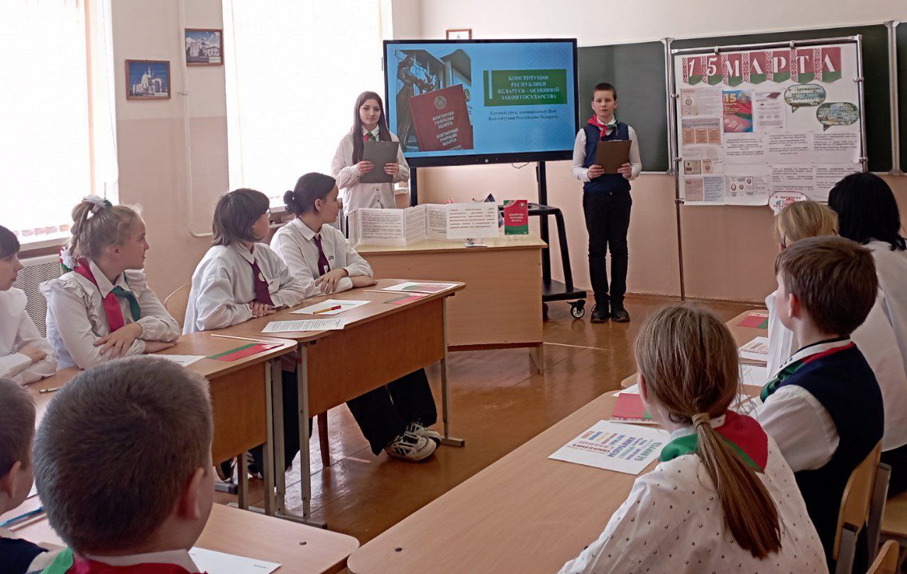 13 сакавіка ў Міжэвіцкай сярэдняй школе прайшлі адзіныя ўрокі, прымеркаваныя да дзяржаўнага свята - Дня Канстытуцыі. Асаблівую ўвагу на ўроках надавалі таму, што Канстытуцыя — гэта не проста дакумент, а гарант міру і стабільнасці нашага грамадства. Быць грамадзянінам — значыць не толькі карыстацца правамі, але і несці адказнасць за будучыню сваёй Радзімы.