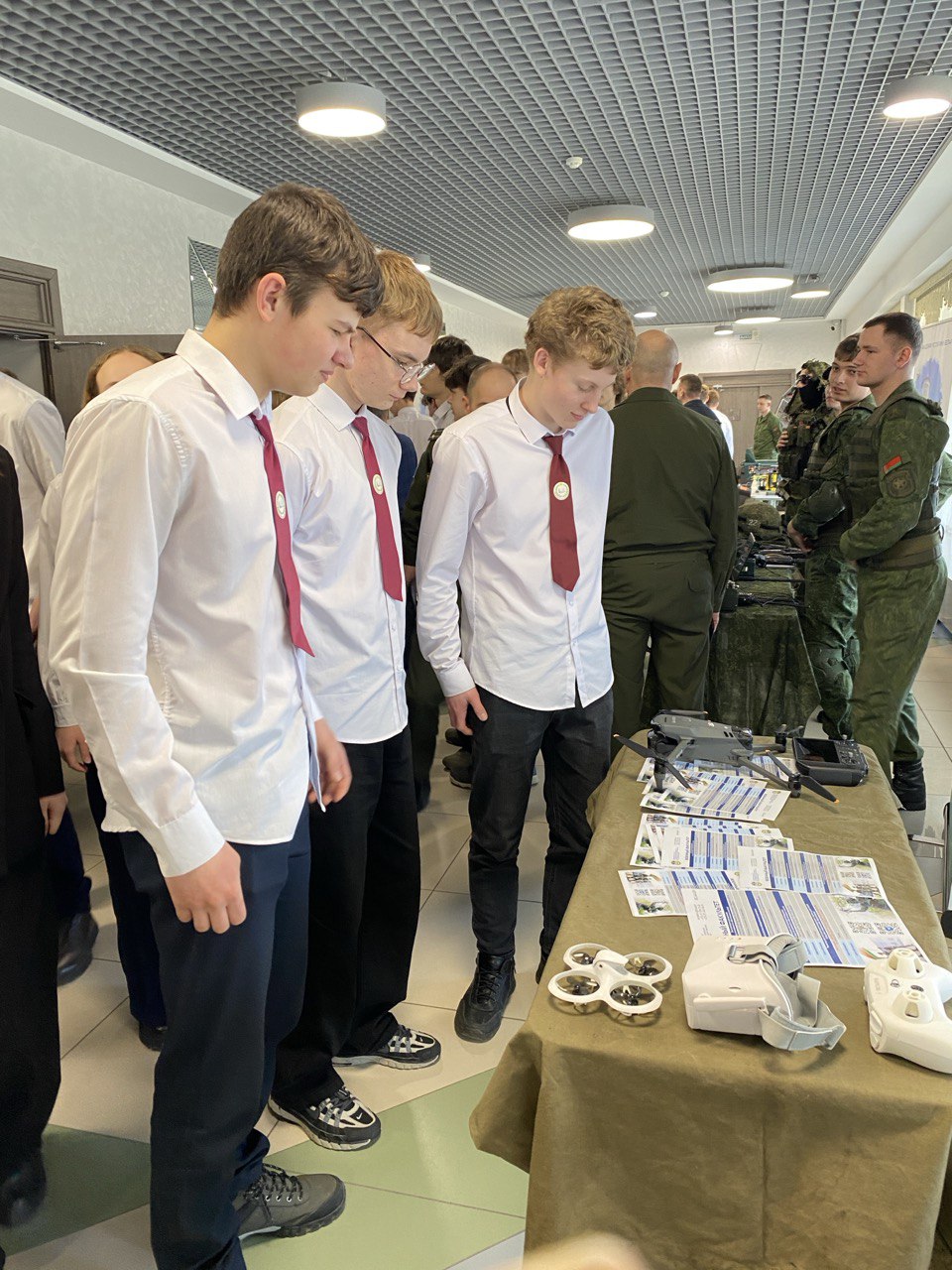 5 марта 2026 года учащиеся 9-11 приняли участие в профориентационной встрече с сотрудниками ВУЗов военного профиля. Ребята познакомились с условиями поступления, проживания и обучения в учреждениях образования Республики Беларусь и Российской Федерации. Вниманию участников встречи были представлены интерактивные площадки с элементами вооружения, используемого во время обучения. Курсанты и офицеры отвечали на все интересующие вопросы.