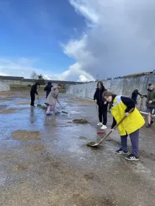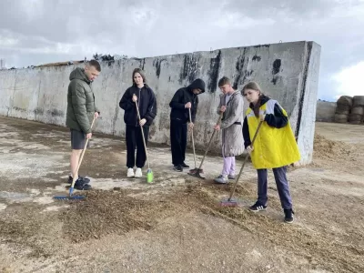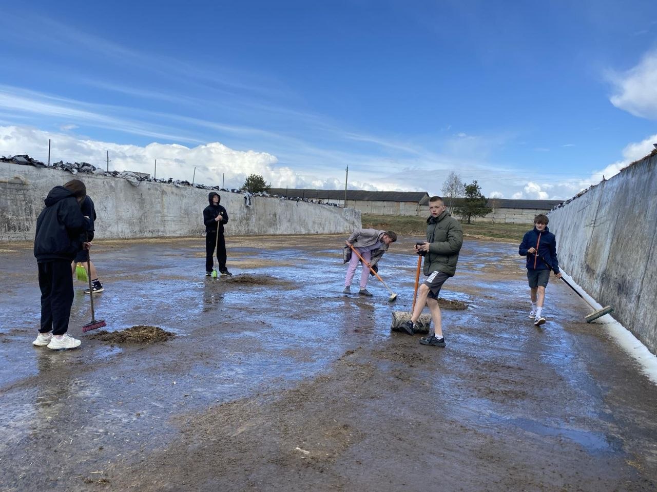 В рамках обеспечения взаимодействия учреждения образования с сельхозпредприятием КСУП "Имени Дзержинского" учащиеся и педагоги школы принимают участие в наведении порядка на земле и производственных объектах хозяйства. Ранее команда коллектива учреждения была задействована на работах по благоустройству на территории мастерских. Сегодня новое задание - чистка сенажных ям от грязи, мусора, старого сенажа. Рабочие руки в напряженную весеннюю пору не бывают лишними. А ещё такая работа воспитывает у ребят любовь к сельскохозяйственному труду и уважение к людям труда, дисциплинирует, учит совместной деятельности, прививает ответственность.