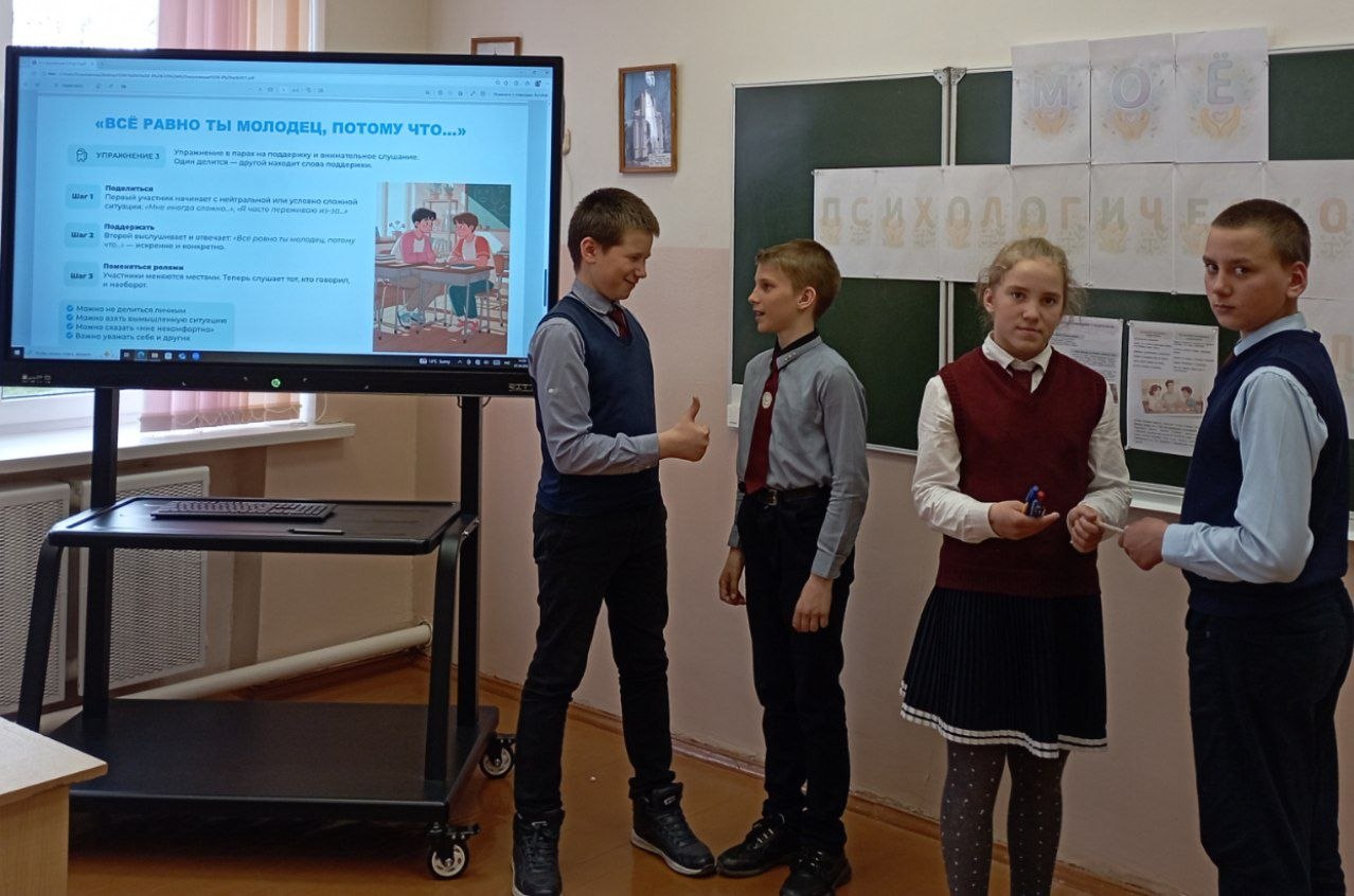 7 апреля в Мижевичской средней школе в рамках проекта "Мое психологическое благополучие" прошли тематические классные часы, направленные на то, чтобы учащиеся осознали, насколько важно, чтобы тебя понимали, а для этого нужно самим быть готовыми услышать других. Ребята пришли к выводу, что качество их жизни напрямую зависит от качества их общения. Для этого нужно окружать себя теми, кто тянет вверх, и не забывать самим быть тем человеком, рядом с которым хочется становиться лучше.