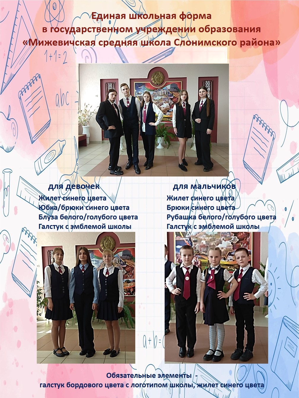 В учреждении образования введена единая школьная форма. Для формы определён тёмно-синий цвет.